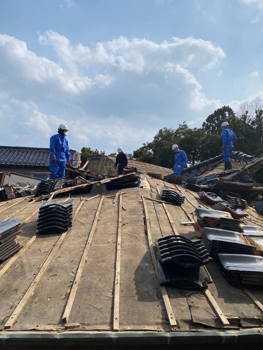 倒壊した家屋の瓦の撤去活動に従事しました。この瓦は近所のお寺の瓦修理にて再利用されます