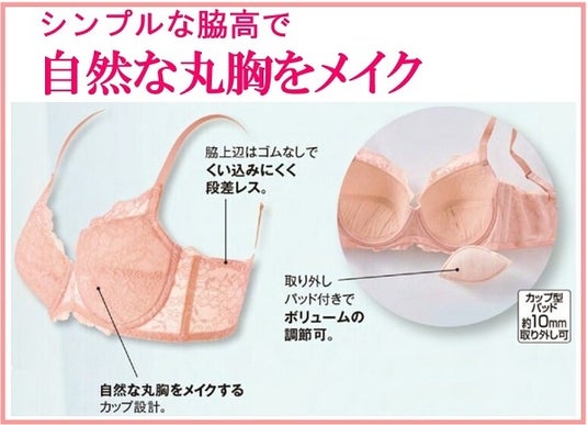 人気の「脇すっきりブラシリーズ」には、セシールならではの特徴のある商品が多い一方、試しやすい商品がないのではと思い、初心者でも使いやすい商品を開発しました。程よい脇高設計でどんな服にも合いやすいきれいな丸胸をメイクするカップ設計になっています。