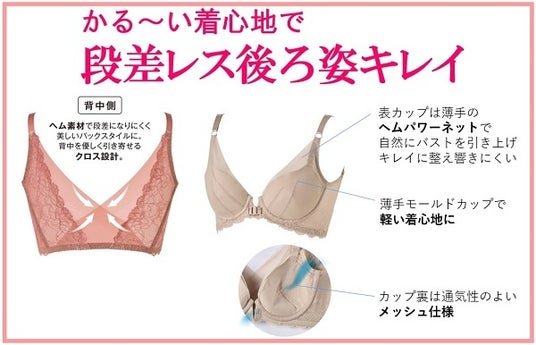 軽い着心地ながらも後ろ姿をすっきりきれいに見せられるブラジャーです。