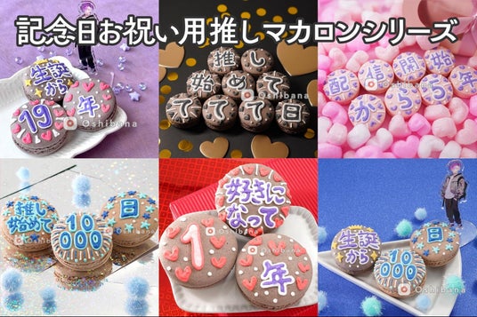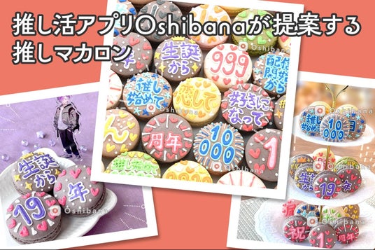 推し活アプリ 「オシバナ」は、推しをお祝いするための、推し色にあわせたセミオーダーも可能な特別なマカロン「推しマカロン」を提供しています。