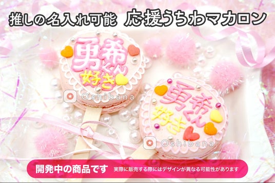 推しの名入れができる激カワの「応援うちわマカロン」。生産数量を絞って発売予定です。