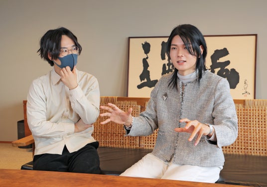 「桜音夜」への思いを語るござさん(左)とBudoさん(京都市中京区・京都新聞社)