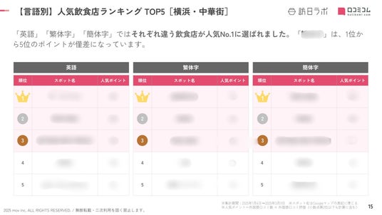 - 調査対象:訪日ラボが独自に選出した横浜・中華街エリアの飲食店 2,040か所