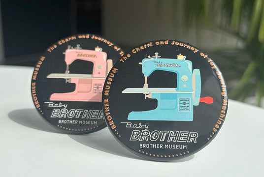 なお、トイミシンの展示コーナーの新設を記念して、昨年12月に発売した新製品、全自動カンバッジメイカー*¹で作製したカンバッジを、本日3月27日から5月下旬までの期間限定で配布する。*²配布を行うカンバッジは、ブラザー製のトイミシン「Baby Brother」をモチーフにしたデザインだ。館内を見学し、トイミシンに対する感想を記入してパネルに貼るか、展示に関するSNS投稿をすると、カンバッジを受け取ることができる。