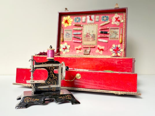 トイミシンとは、19世紀後半に誕生した主に子ども向けに作られた玩具のミシンである。一般的な家庭用ミシンの4分の1ほどの大きさだが、実際に縫製が可能で、子どもたちが裁縫技術を楽しく学ぶための教育用ツールとしても、重要な役割を果たした。