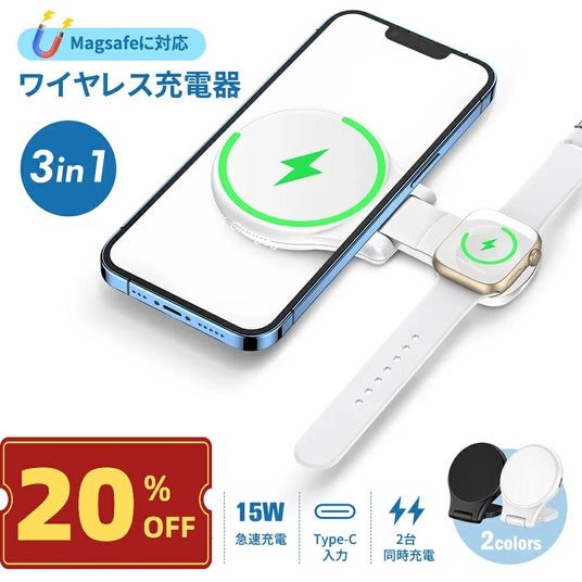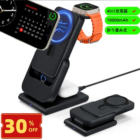 業界初両用 ワイヤレス充電器とモバイルバッテリー両立 4in1magsafe充電器