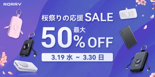 ポータブル充電製品ブランドRORRYは、楽天市場にて開催中の「桜祭りの応援SALE」に参加中です。セール期間は3月19日(水)から3月30日(日)23時59分まで、残すところあと4日間となりました。