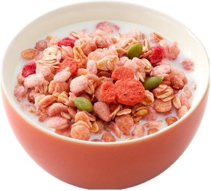 「フルグラ(R)」にミッキー型のいちごのトッピングが入った『フルグラ(R) ベリーミルク味』