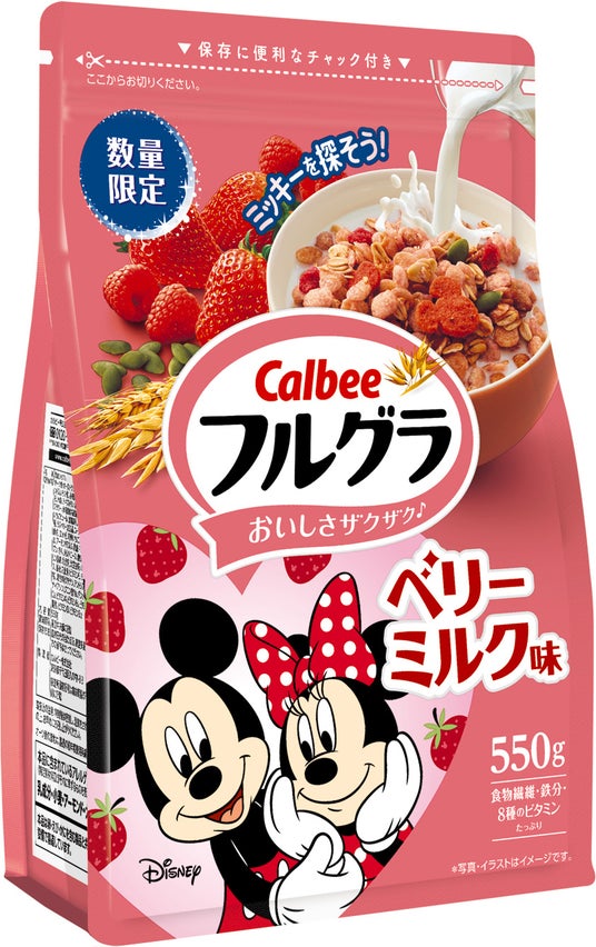 カルビー株式会社(本社:東京都千代田区、代表取締役社長:江原 信、以下 カルビー)は、シリアルブランド売上No.1※1の「フルグラ(R)」が、ウォルト・ディズニー・ジャパン株式会社のディズニーデザインになって初登場した新商品『フルグラ(R) ベリーミルク味』を2025年4月7日(月)から全国で数量限定発売します。※無くなり次第、終了。コンビニエンスストアでの取り扱いはありません。