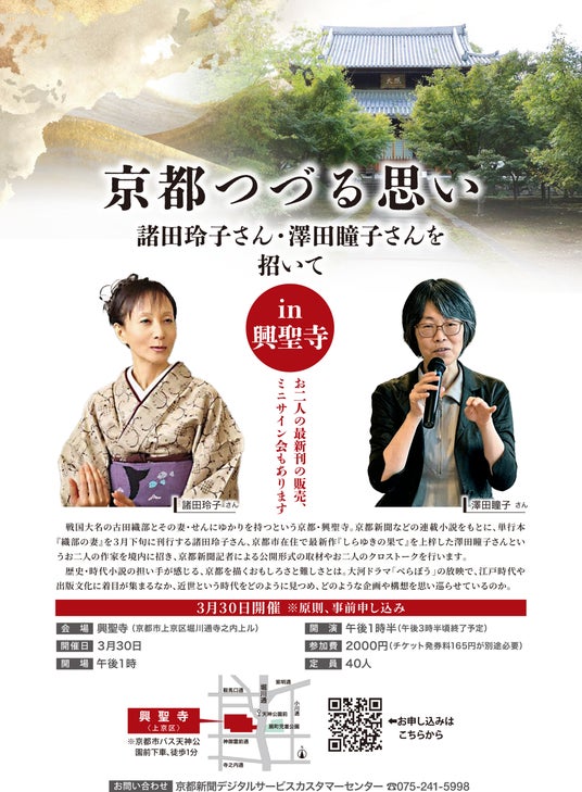 京都つづる思い 諸田玲子さん・澤田瞳子さんを招いて in 興聖寺 クロストーク参加者募集
