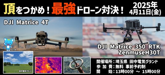 建設業、測量業、インフラ点検などで使用されている、「DJI Matrice 4T」および 「DJI Matrice 350 RTK (搭載カメラ:Zenmuse H30T)」を実演で紹介する、「DJI Matriceシリーズ デモ飛行セミナー」を開催いたします。