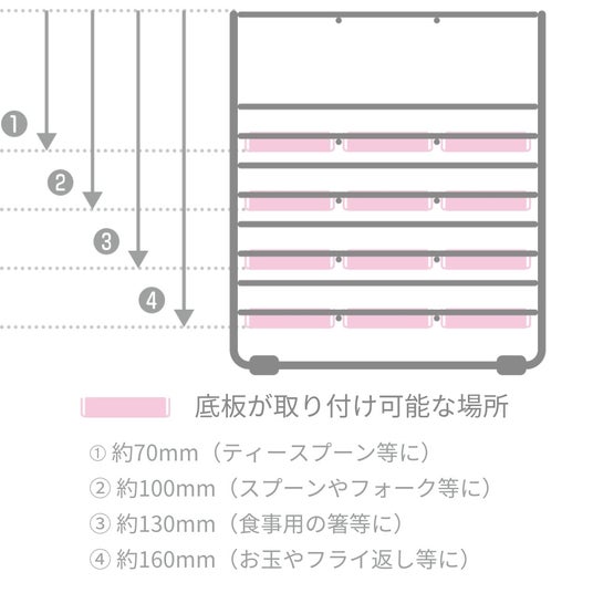 3.4段階に高さが変えられる底板付き。取り外して簡単にお手入れ可能