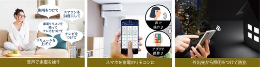 スマートフォンで赤外線リモコン家電を一括制御できる「スマート家電リモコン」を全戸に導入。「テレビをつけて」「エアコンを24℃にして」など、スマートスピーカーがあれば音声で家電を操作できるだけでなく、増え続ける赤外線リモコンをスマホ1台にまとめて管理。さらに、本体に搭載している「温度・湿度・照明センサー」で状況を確認し、室内を快適に保ち、不在時に照明をつけて防犯対策をすることができます。