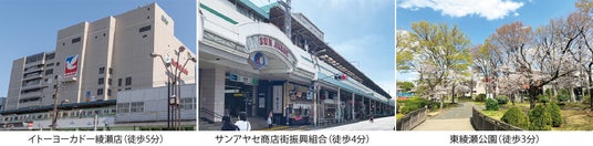 最寄り駅周辺には、食品、ファッション、書店など専門店が並ぶ商業施設をはじめ、昔ながらの商店街、さらに全長約2kmに渡るU字型の「東綾瀬公園」といった、魅力あふれるスポットが集結。医療施設や銀行等、生活に欠かせない施設も揃い、便利さとやすらぎの両方を楽しめる住宅街が形成されています。