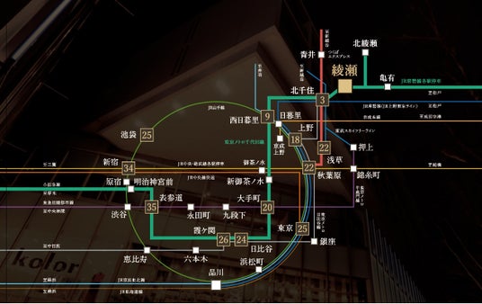 オフィス街や繁華街など、都心の主要駅を結ぶ東京メトロ千代田線を利用することで、大手町や日比谷、表参道へダイレクトにアクセス。さらにJR常磐線と小田急小田原線との相互運転により千葉方面、神奈川方面と広範囲に広がります。