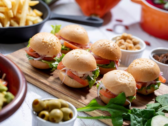 朝食のブッフェコーナーにヴィーガン対応のヘルシーなミニバーガーが追加