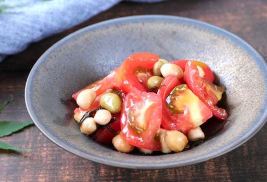 【副菜に!】5分でできるスピード副菜♪豆とトマトの塩昆布漬け
