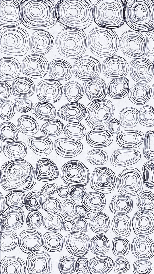 絵画のみならず織り物、切り紙、刺繍など、いずれも緻密で色彩と構成の妙に富む様々な表現を生み出し続けている。彼女は一つの仕事に数か月から数年集中して取り組んだあと、不意にやめて別の仕事に移るのが常。現在彼女が打ち込んでいるのは、丸く切り抜いた紙をいくつもの色で同心円状に彩色し、塗り終わった紙を壁に並べて貼っていくこと。