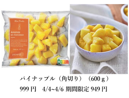先行発売日と同じ4月4日(金)から全店で開催されるセレクトマルシェでは、ピカールの冷凍フルーツを使った簡単ジャム作りレシピとともに、おすすめのフルーツ商品をご紹介します。ピカールのフルーツは、露地栽培され、旬の時期に収穫し下処理などの加工をして急速冷凍しているため、いつでも旬の味を楽しめるのが特徴です。日本では珍しいフルーツも、手軽にお試しいただけます。ちょっとひと手間をかけて、いつもとは違った贅沢なジャムをお楽しみください。