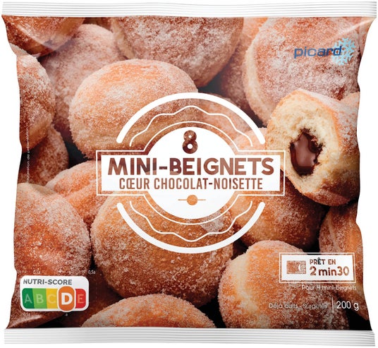 ノワゼット(ヘーゼルナッツ)のペーストとチョコレートをミックスしたノワゼットショコラクリームを詰めたミニサイズのドーナツです。電子レンジで解凍ができるので、手軽なおやつとして最適です。