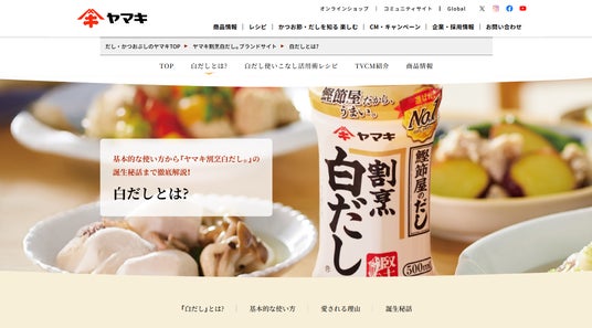 「ヤマキ割烹白だし(R)」ブランドサイトをリニューアル公開