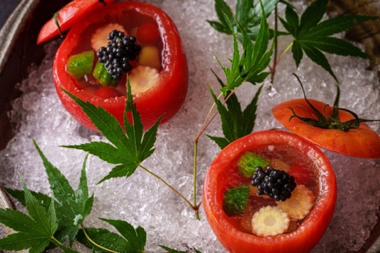 地元・雲仙野菜を中心に、長崎の山海の幸をふんだんに使用した地産地消の和食は、栄養バランスに優れ、暑さで疲れた身体を優しくいたわります。冷製仕立てのお椀やさっぱりとしたお造り、涼を感じる盛り付けなど、視覚と味覚の両面から涼を楽しんでいただけるお料理をご提供いたします。