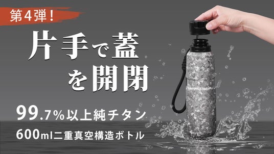 【3/31よりMakuakeにて発売開始!】第4弾!使いやすさを追求、片手で蓋を開閉!650ml大容量純チタンボトルが登場