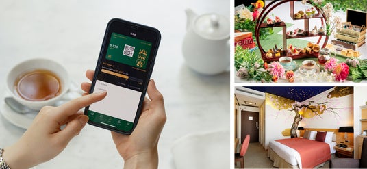 「リーガメンバーズ」アプリ(左)、芝パークホテル アフタヌーンティー(右上)、パークホテル東京 アーティストルーム(右下) ※全てイメージ