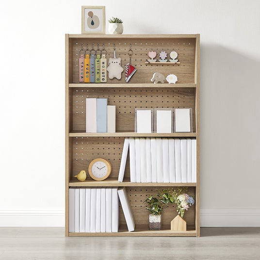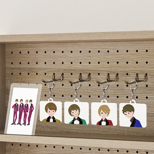 本製品は推し活グッズを飾ることができる点が最大の特徴です。棚板はカードスタンドを設けているため、ポストカードやトレカをきれいに飾ることができます。背板はパンチングボードになっている為、棚やフックを取り付けて推しのキーホルダーを飾ることもできます。推し活収納として販売されている製品は置く場所、置けるアイテムを制限されてしまうこともありますが、本製品はシンプルなラックの形が元となっている為、制限されることなく好きなものを好きな配置で飾ることが可能です。