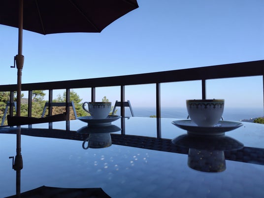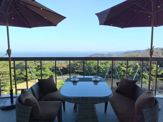 ※熱海市街地と初島を望む絶景のテラスで朝のモーニングコーヒーをお楽しみいただけます。