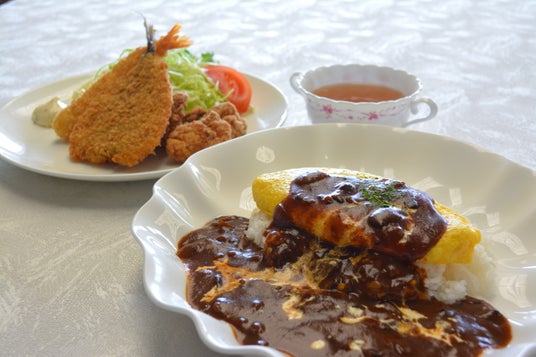 支配人考案のオム「ハヤシ」と人気のアジフライなどの美味しさが詰まったミックスフライをセットにしたボリュームも満点のメニューです。