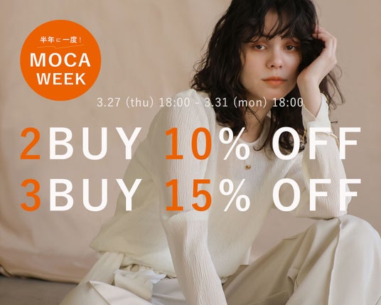 MOCAWEEK期間中に、人気アイテムも対象となる2BUY10%3BUY15%OFFを実施!