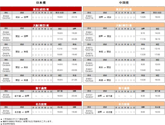 中国国際航空(CA:エアチャイナ)および深圳航空(ZH:シンセン航空)は、日本発着路線における夏期スケジュール(2025年3月30日(日)~2025年10月25日(土))を決定しました。