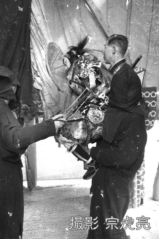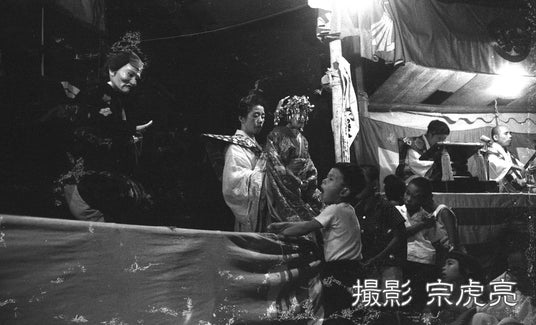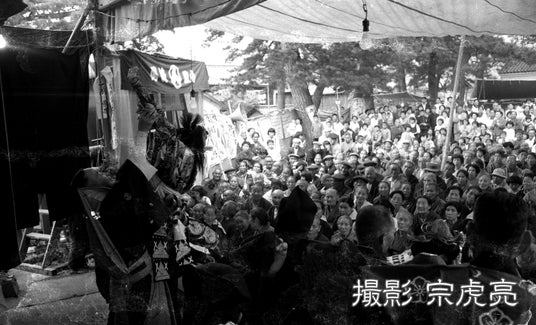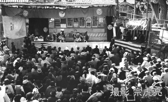 ちょうど写真が撮られた昭和30年代には、戦争の影響もあり淡路島の人形浄瑠璃の座元は3、4座まで減っていました。本来の形であった「野掛け小屋」として公演していたのはこの頃が最後、貴重な写真です。