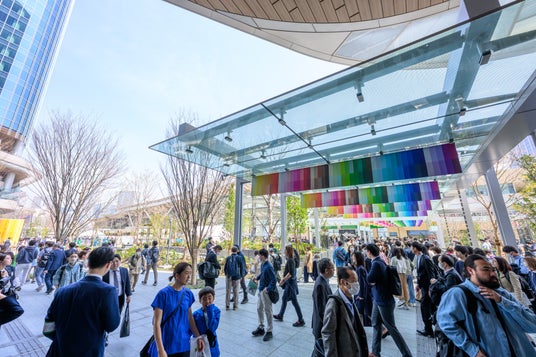 セレモニーが終了し、まちびらきを心待ちにしていた多くのお客様が列をつくる中、正午にまちびらきしました。本日からGateway Parkで開催されているマルシェや、自動走行モビリティを体験しているお客様の姿も数多く見られ、初日は約50,000名※の来場者で賑わいました。まちびらきから数か月の間、TAKANAWA GATEWAY CITYが創造していく未来を体感していただく、様々なサービス・イベントを多数展開し、皆さまをお迎えします。