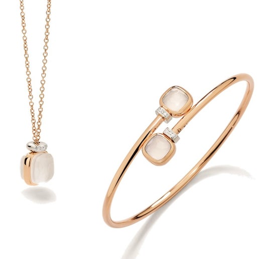 「ヌード ミニ」コレクションにはミルキークォーツ、スカイブルートパーズ、ロンドンブルートパーズを組み合わせた洗練されたジュエリーのバリエーションが揃います。ローズゴールドのイヤリングや、ホワイトダイヤモンドが 煌めくペンダント、ブレスレットがラインナップしています。デザインはメゾンの卓越した職人技術やストーンセッティング、カッティング、そして多様なスタイリングの可能性を通して表されています。