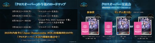2025年3月、5月、7月は全国のブシロード公認店舗にて「クロスオーバー交流会」を実施、6月7日(土)~8日(日)の「Grand Prix 2025 Summer 千葉」にて併催イベントとして大会を実施いたします。