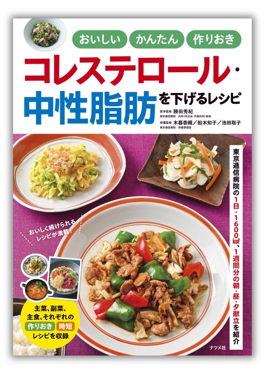 東京逓信病院の1日・1600kcal、1週間分の献立を掲載。コレステロール、中性脂肪が気になる方のための『おいしい かんたん 作りおき コレステロール・中性脂肪を下げるレシピ』を3月18日に発売。