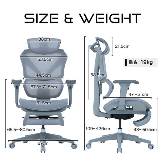 ・座面高(cm):45.5~52.5