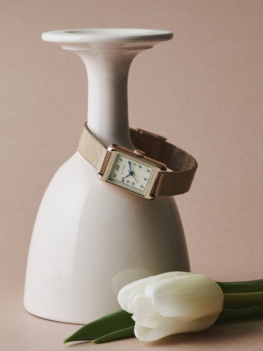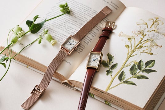 縦29mm×横18mmのコンパクトなレクタングルケースに、日本製のクオーツムーブメントを搭載。