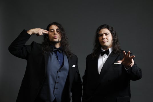 就任を記念しカメラにDOOMする斉藤ブラザーズ:斉藤ジュン(左)斉藤レイ(右)
