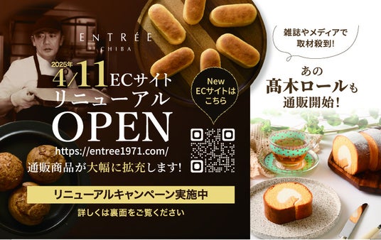 株式会社高木商事(本社:千葉県船橋市/代表取締役社長:高木康裕) の「菓子工房アントレ」のECサイト「ENTREE Online」(https://entree1971.com)は2025年4月11日(金)にリニューアルオープンします。
