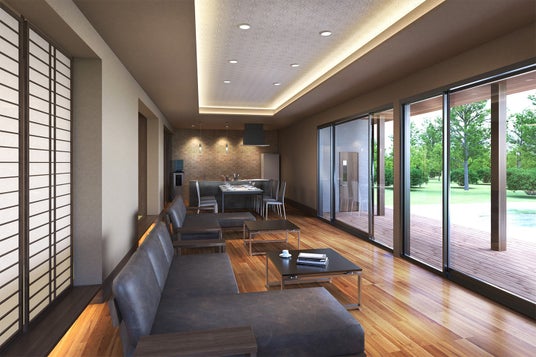 全棟が約200平方メートル のスイート仕様で、吹き抜けの開放的なリビングと、四季折々の風景を楽しめる