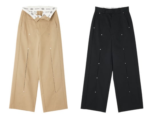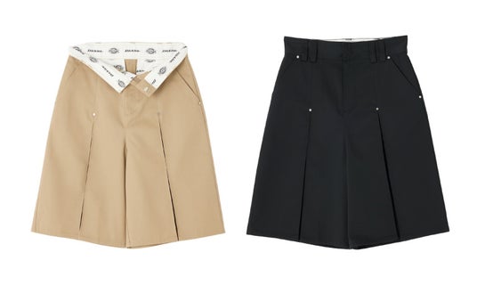 Dickies(R) 定番アイテムの「875」をベースにSLY らしいデザインに落とし込んだワークパンツやアシンメトリーに配置されたポケットやサイドのダブルベルトがポイントのプリーツスカート、フロントにボックスプリーツを施したハーフパンツの全3アイテムを発売いたします。