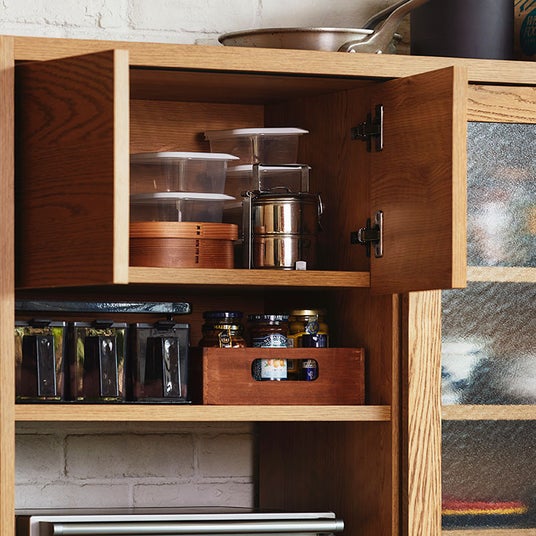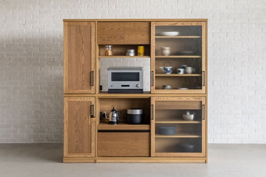 スライド扉一つで「見せる&隠す」収納を切替えできる便利な食器棚