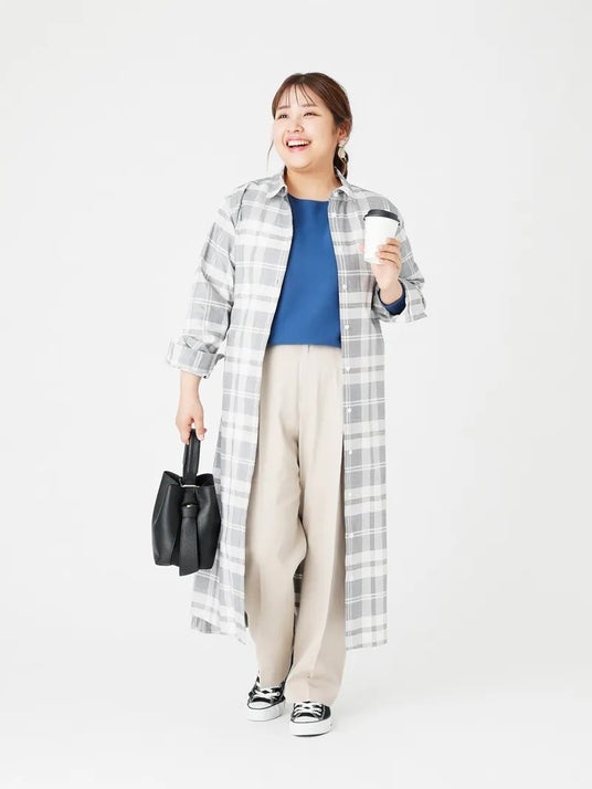 シンプルなテーパードパンツは、単品での着回しにも活躍。インパクトのある色・柄のアイテムを引き立て、カジュアルスタイルに落ち着きを与えてくれます。シャツワンピースをコートのようにさらりと羽織って、軽やかな着こなしを楽しんで。