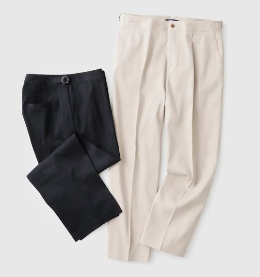 同素材ベストとのセットアップでハンサムな表情に。スタンドカラーのクレリックシャツをインして、クラシカルにまとめました。パンツはベストとのバランスが取りやすいウエスト位置になっており、どの角度から見てもすっきりとしたシルエットが叶います。