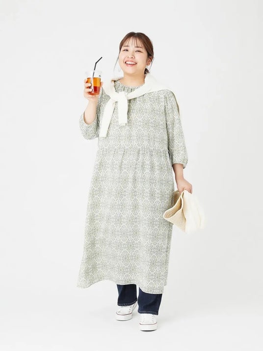 ミモザプリント ドロスト7分袖ワンピース 税込 ¥37,400~