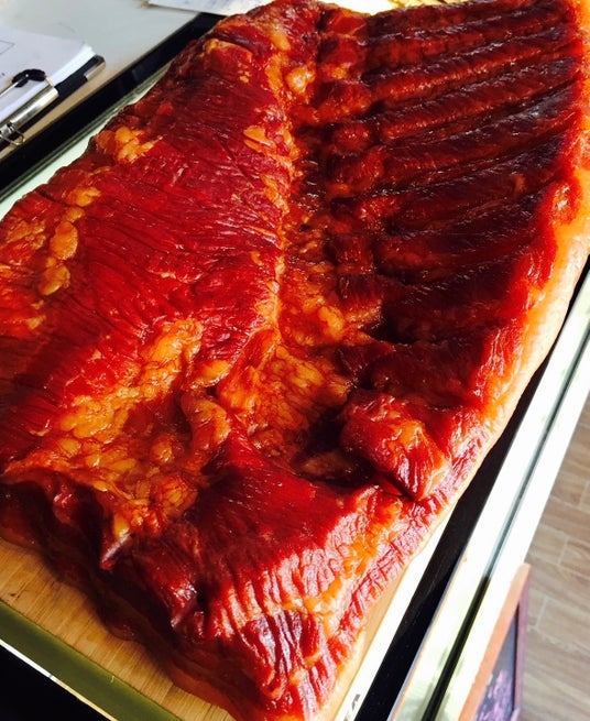 こちらがスライスする前のベーコンの原木