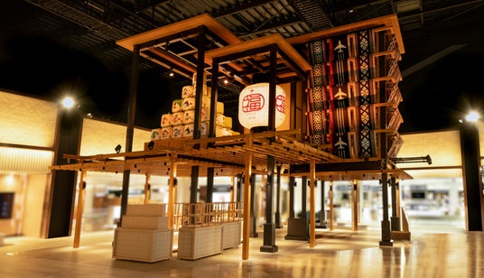 船場、伝統工芸品を用いたダイナミックな空間演出で、福岡空港を「宝の街 福岡」の魅力を伝える場に